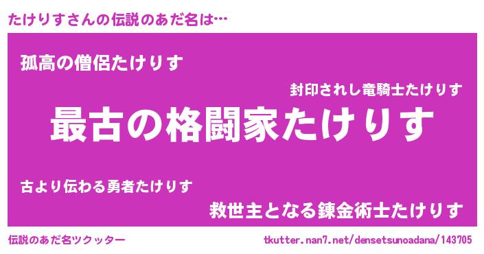 | ヒーロー風カッコイイあだ名 | 『ウルトラたけりすマン』『仮面タケダー』 |