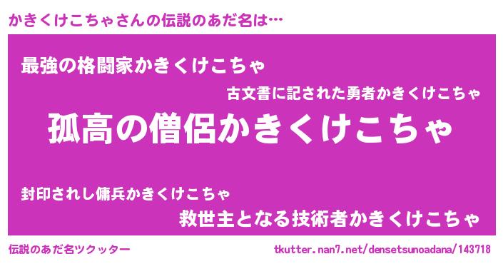 | 男性向けラノベタイトル風あだ名 | 『ダンジョンにかきくけこちゃを求めるのは間違っているだろうか』 |