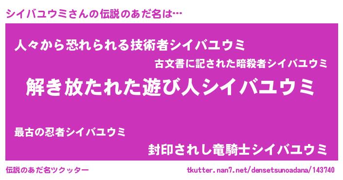 | 意味不明あだ名 | 『とにかく怪しいシイバユウミ』 |