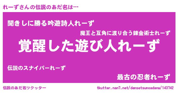 | 意味不明あだ名 | 『とにかく怪しいれーず』『自称れーず』 |