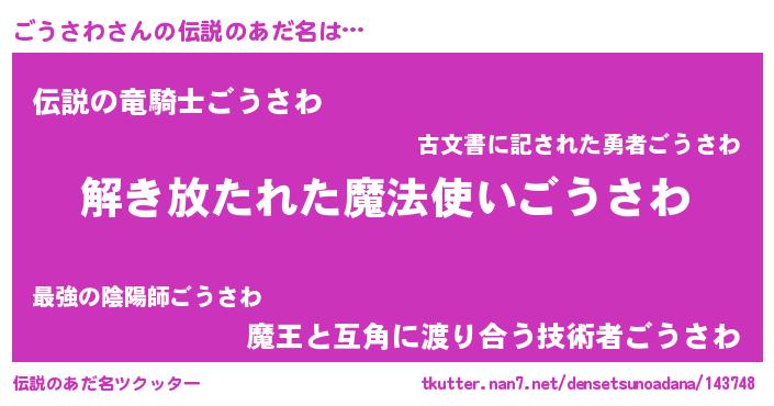 | 胡散臭い通販商品みたいなあだ名 | 『伝統あるサプリメント…その名も「ごうさわ」』 |