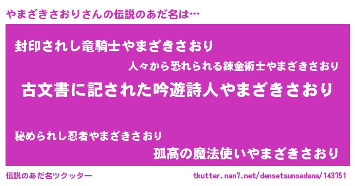 | 意味不明あだ名 | 『永久保存やまざきさおり』 |