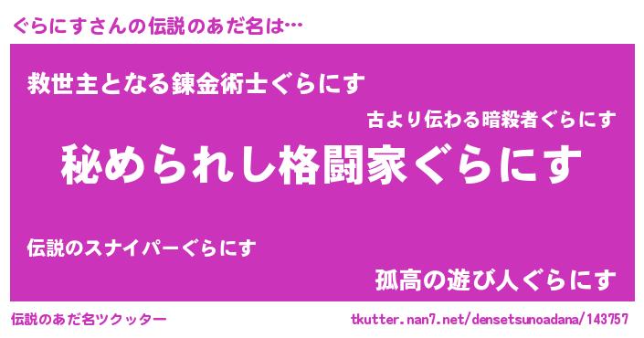 | 意味不明あだ名 | 『ぐらにすフォーエバー』『自称ぐらにす』 |