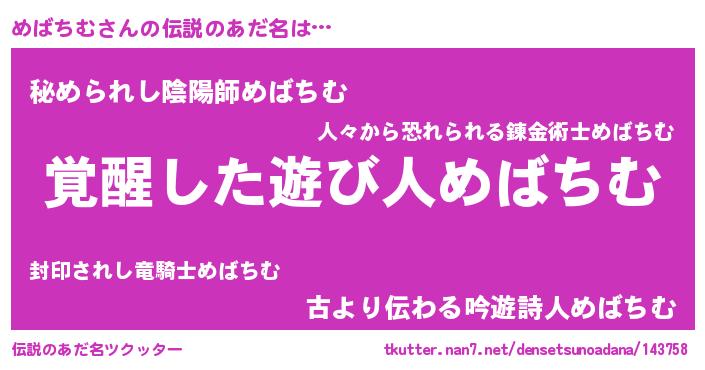 | 意味不明あだ名 | 『住所不定無職めばちむ(93歳)』 |