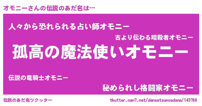 | ヒーロー風カッコイイあだ名 | 『魔戒騎士オモ』『正義の使者オモニー』 |