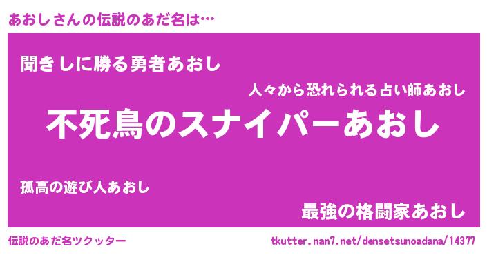 | 意味不明あだ名 | 『ペロリンあおし』『永久保存あおし』 |