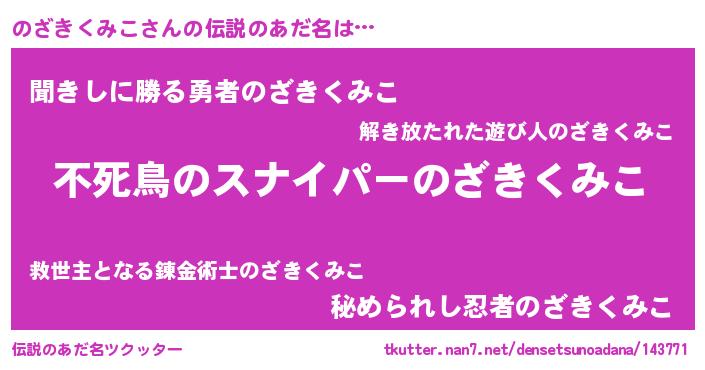| 女子向けラノベタイトル風あだ名 | 『乙女ゲームの破滅フラグしかない悪役のざきくみこに転生してしまった…』 |