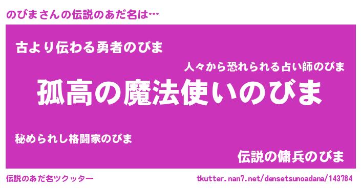 | 意味不明あだ名 | 『自称のびま』『住所不定無職のびま(79歳)』 |