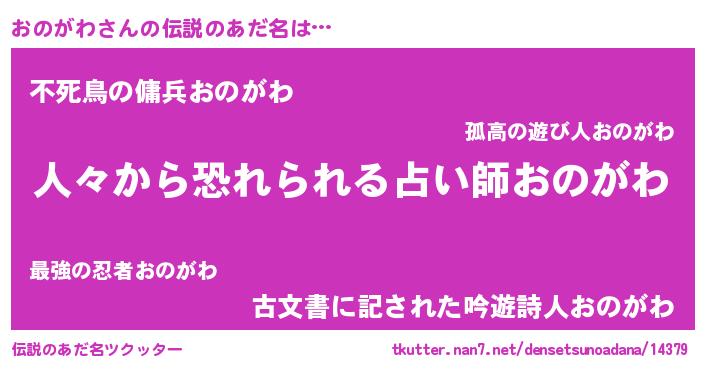 | 男性向けラノベタイトル風あだ名 | 『緋弾のオノガワ』『魔弾の王とおのがわ』 |