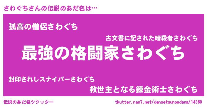 | ヒーロー風カッコイイあだ名 | 『究極戦士サワグチ』『幻影騎士サワ』 |