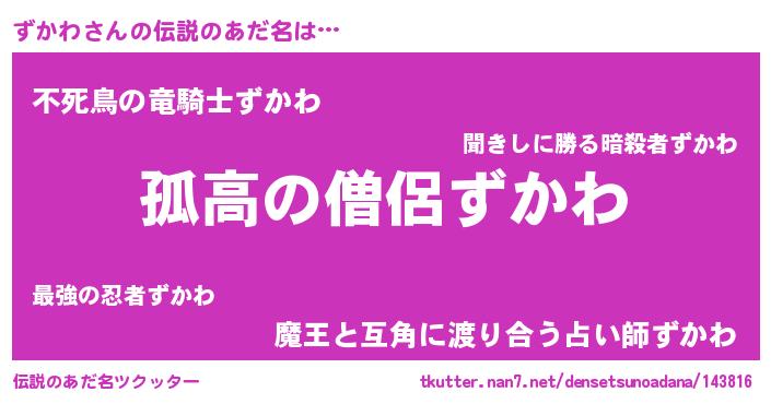 | 意味不明あだ名 | 『自称ずかわ』『エリンギ科ずかわ属』 |