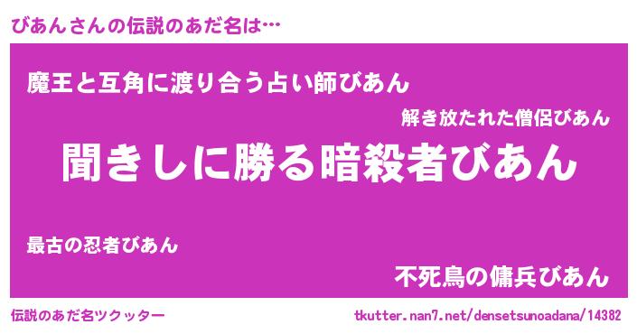| ヘコむあだ名 | 『びあん(笑)』『びあにー』 |