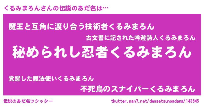 | 意味不明あだ名 | 『自称くるみまろん』 |