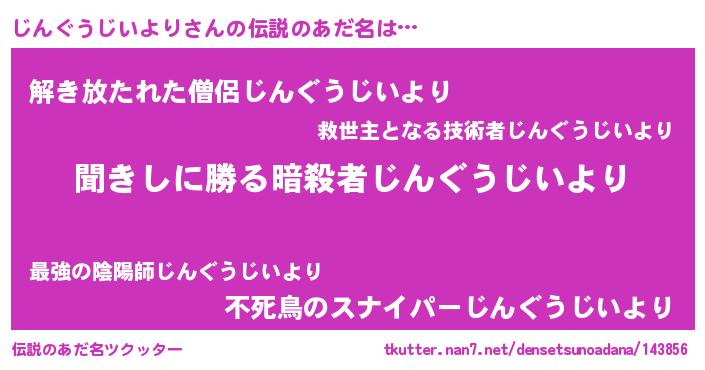 | 意味不明あだ名 | 『永久保存じんぐうじいより』 |