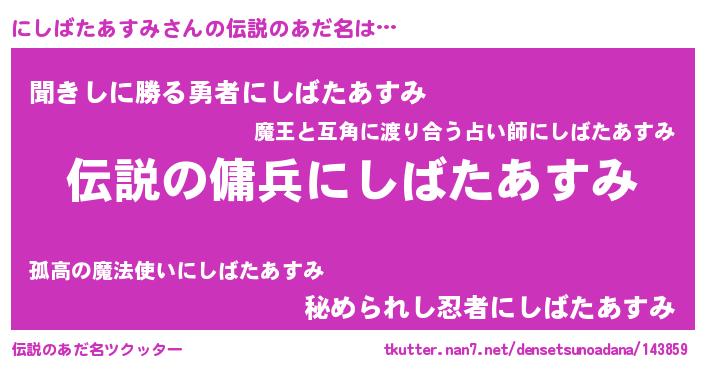 | ヘコむあだ名 | 『にしもー』『にしばたあすみ(笑)』 |
