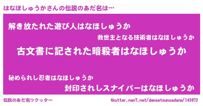 | 意味不明あだ名 | 『永久保存はなほしゅうか』 |