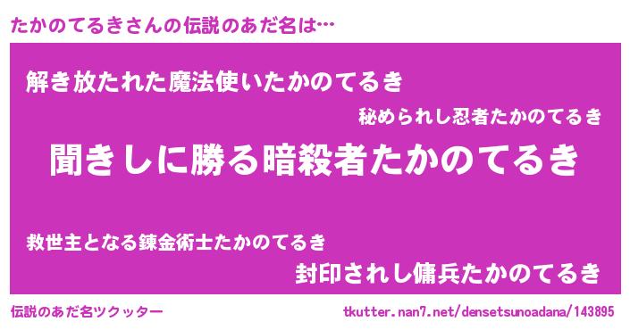 | 意味不明あだ名 | 『永久保存たかのてるき』 |