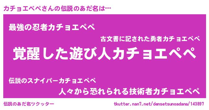 | 女子向けラノベタイトル風あだ名 | 『カチョエぺぺ様がみてる』 |