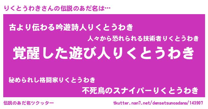 | 肩書あだ名 | 『りくとうわきリーダー』 |