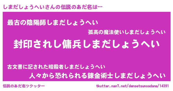 | 男性向けラノベタイトル風あだ名 | 『この素晴らしい世界にしまだしょうへいを!』 |