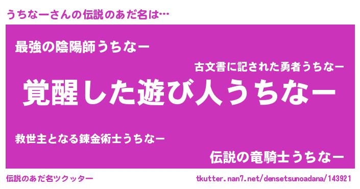 | ヒーロー風カッコイイあだ名 | 『究極戦士ウチナー』『天弓騎士ウチ』 |