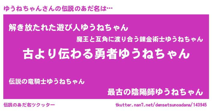 | 意味不明あだ名 | 『永久保存ゆうねちゃん』 |