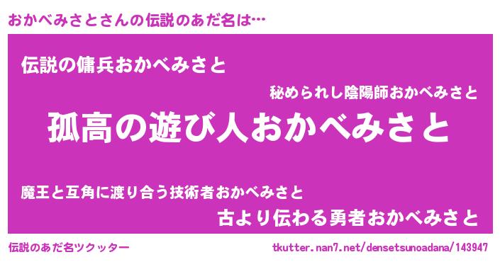 | 女子向けラノベタイトル風あだ名 | 『おかべみさとは平凡を望む』 |