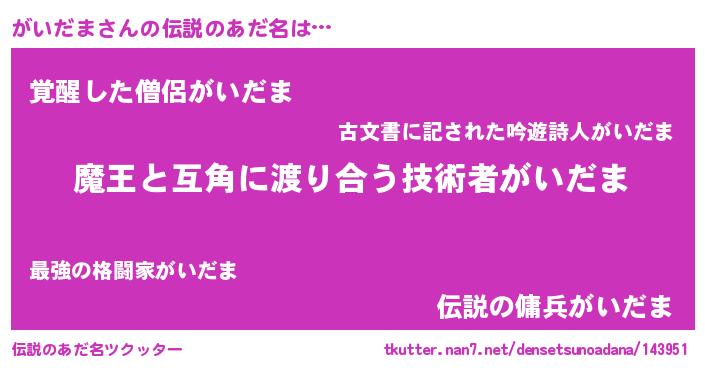 | ヒーロー風カッコイイあだ名 | 『慈愛の使者がいだま』『天弓騎士ガイ』 |
