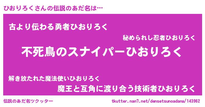 | 男性向けラノベタイトル風あだ名 | 『ヒオリロクアートオンライン』 |