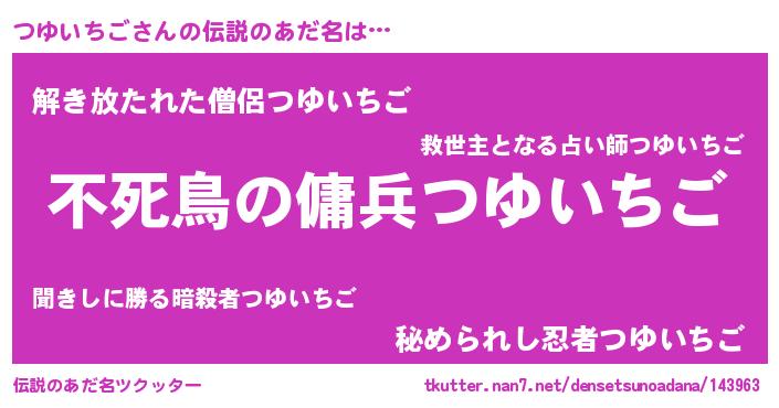 | ヒーロー風カッコイイあだ名 | 『スーパーツユイチゴ』『銀牙騎士ツユ』 |