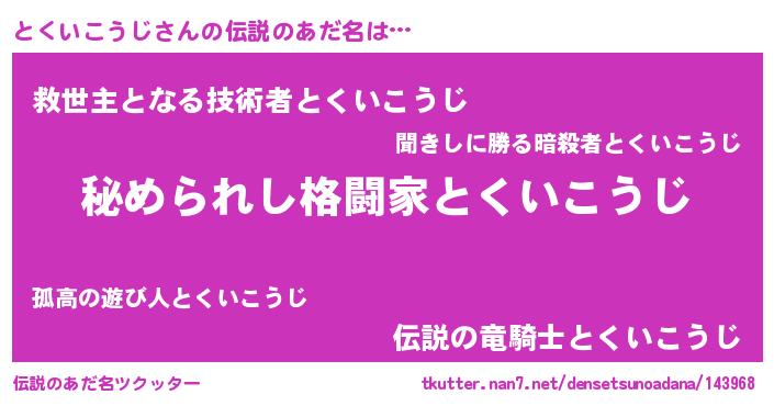 | 男性向けラノベタイトル風あだ名 | 『魔弾の王ととくいこうじ』 |
