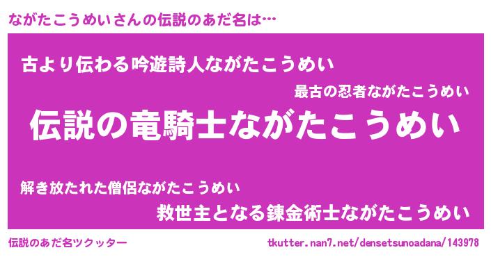 | 男性向けラノベタイトル風あだ名 | 『ながたこうめいの憂鬱』 |