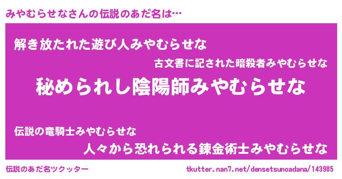 | 意味不明あだ名 | 『みやむらせなフォーエバー』 |