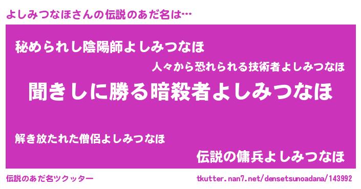 | 意味不明あだ名 | 『永久保存よしみつなほ』 |