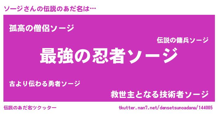 | 男性向けラノベタイトル風あだ名 | 『ソージ~年齢イコール彼女いない歴の魔法使い~』 |