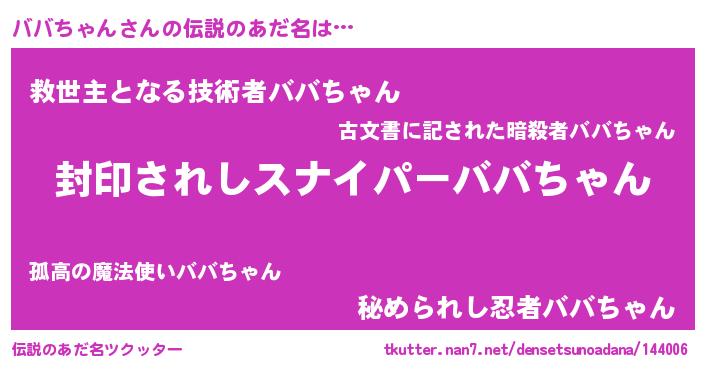 | 胡散臭い通販商品みたいなあだ名 | 『億万長者になれる霊験あらたかなお札…その名も「ババちゃん」』 |