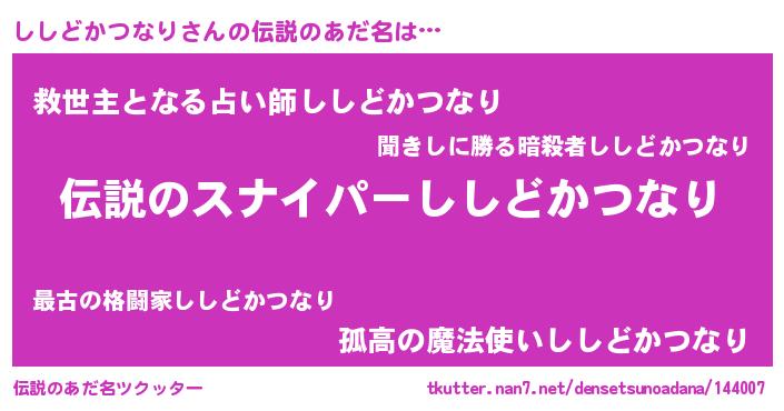 | ヒーロー風カッコイイあだ名 | 『スーパーシシドカツナリ』 |