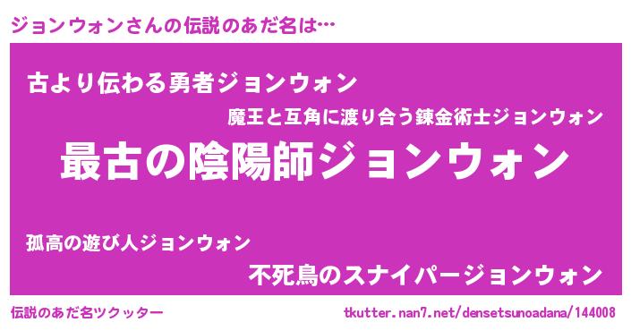 | 欧米人風あだ名 | 『ジョンウォンクリステル』 |