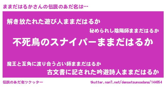 | 欧米人風あだ名 | 『マイケルままだはるか』 |