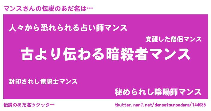 | ヒーロー風カッコイイあだ名 | 『ネオマンス』『正義の使者マンス』 |