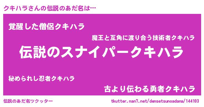 | 女子向けラノベタイトル風あだ名 | 『クキハラなんてお断りですっ。』 |
