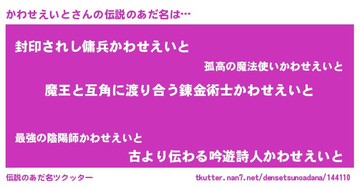 | 胡散臭い通販商品みたいなあだ名 | 『お金では代えられない隕石のかけら…その名も「かわせえいと」』 |