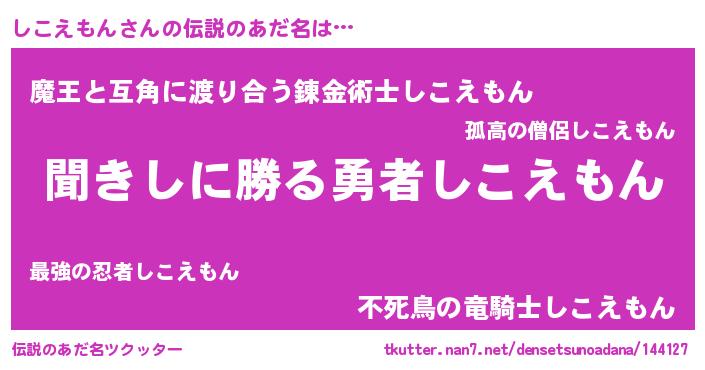 | ヒーロー風カッコイイあだ名 | 『仮面シコダー』『ネオシコエモン』 |