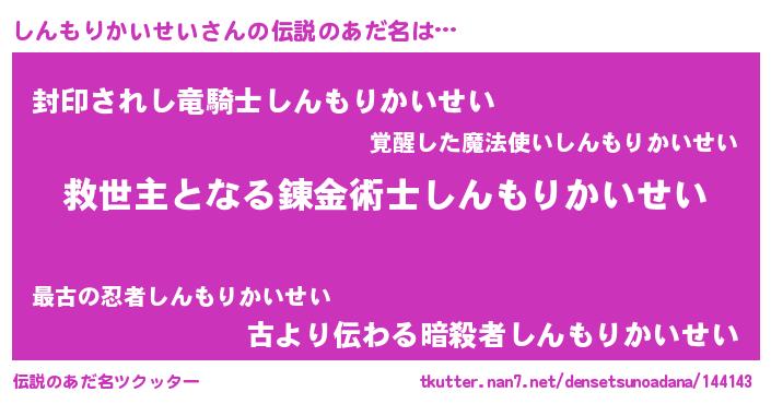 | 意味不明あだ名 | 『住所不定無職しんもりかいせい(95歳)』 |