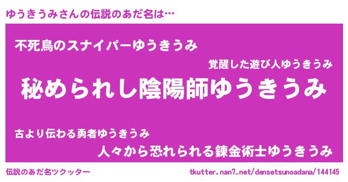 | ヒーロー風カッコイイあだ名 | 『超時空戦士ユウキウミ』『仮面ユウダー』 |