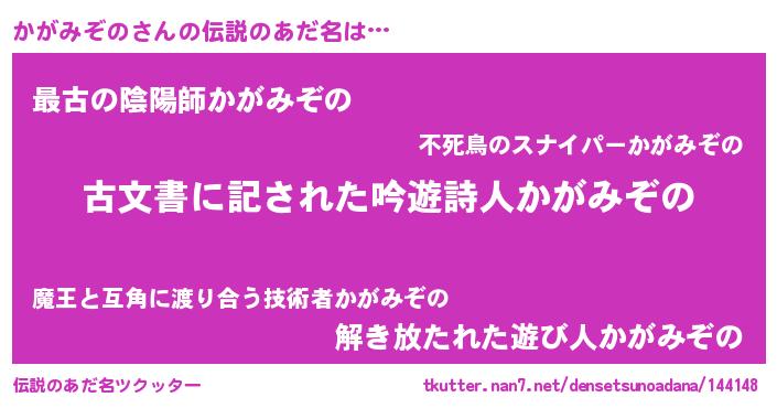 | 意味不明あだ名 | 『永久保存かがみぞの』『自称かがみぞの』 |