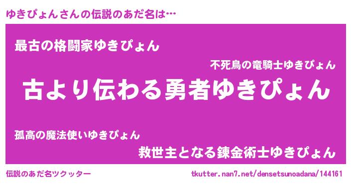 | 男性向けラノベタイトル風あだ名 | 『ゆきぴょんという概念が存在しない退屈な世界 』 |