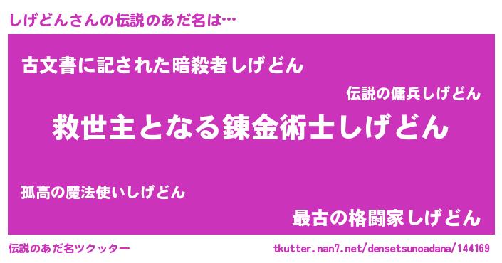 | ヒーロー風カッコイイあだ名 | 『慈愛の使者しげどん』『ネオシゲドン』 |