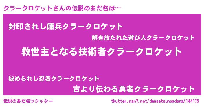 | 欧米人風あだ名 | 『ダニエルクラークロケット』 |