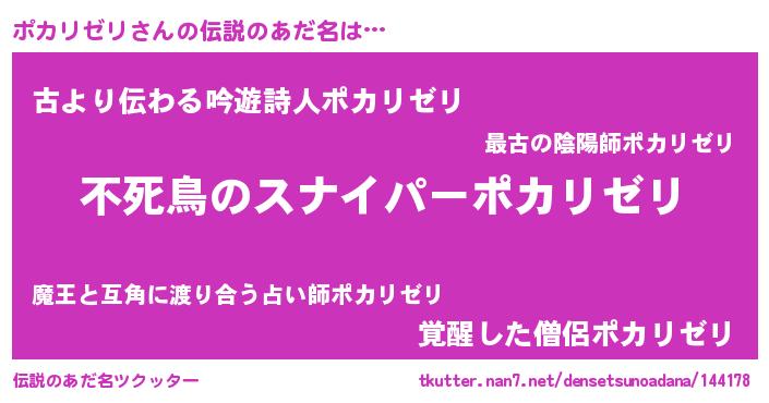 | ポケモン風あだ名 | 『ポカチュウ』『ゼニポカ』 |